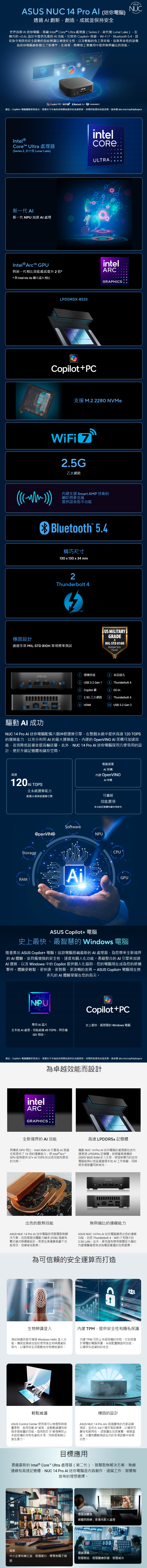 華碩 NUC 14 Pro AI RNUC14LNSU7074H9(Intel Ultra 7 256V/16G DDR5/1TB PCIE/W11)